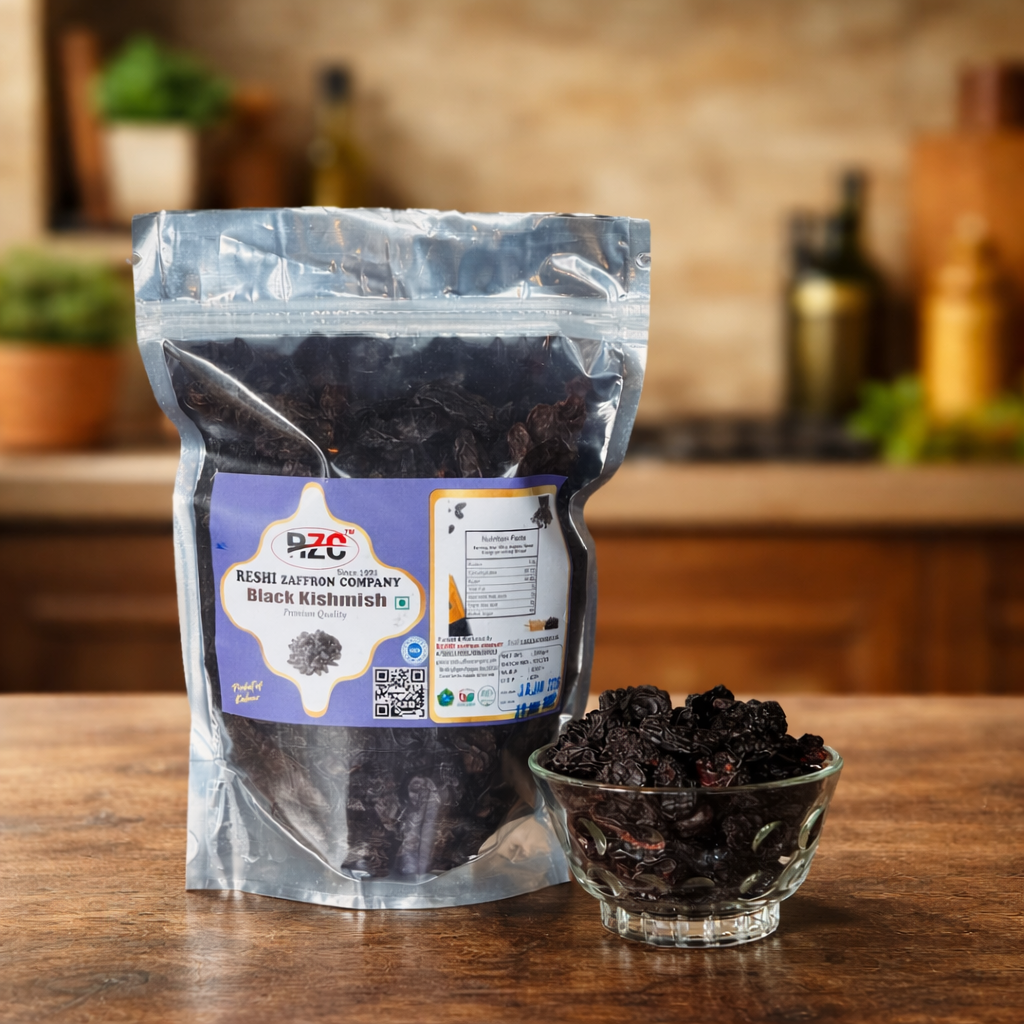 Premium Black Kishmish (Raisins) with naturally sweet, plump, and juicy texture. Perfect for snacking, baking, cooking, and adding natural sweetness to your recipes.