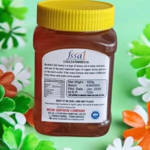 Premium Kashmiri Sidr Honey (500ml) sourced from pure Sidr flowers in the Himalayan region. Naturally rich, golden, and aromatic, this honey is unprocessed, preserving its natural sweetness, nutrients, and therapeutic properties.